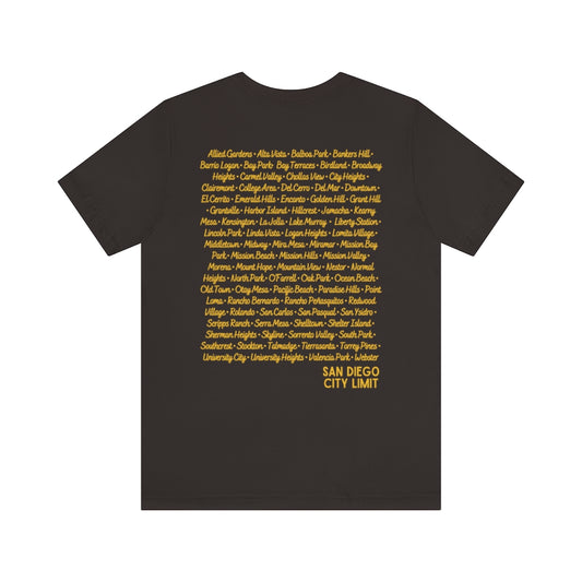 San Diego City Limit Tee | SD Areas on back (Brown)