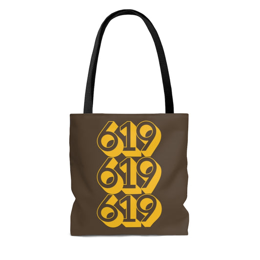 619 Tote Bag, San Diego Brown and Gold Shopping Bag, SD Beach Bag