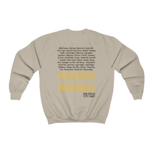 San Diego City Limit Sweatshirt | SD Areas on back (Brown)