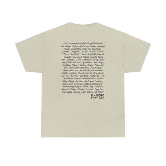 San Diego City Limit Heavy Cotton Tee, SD Areas on back