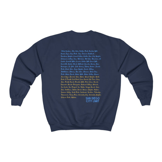 San Diego Neighborhoods Sweatshirt | SD Areas on back (Baby Blue)