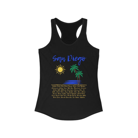 San Diego CA Women's Racerback Tank Top, SD Sleeveless T-Shirt (Multiple Colors Avail)