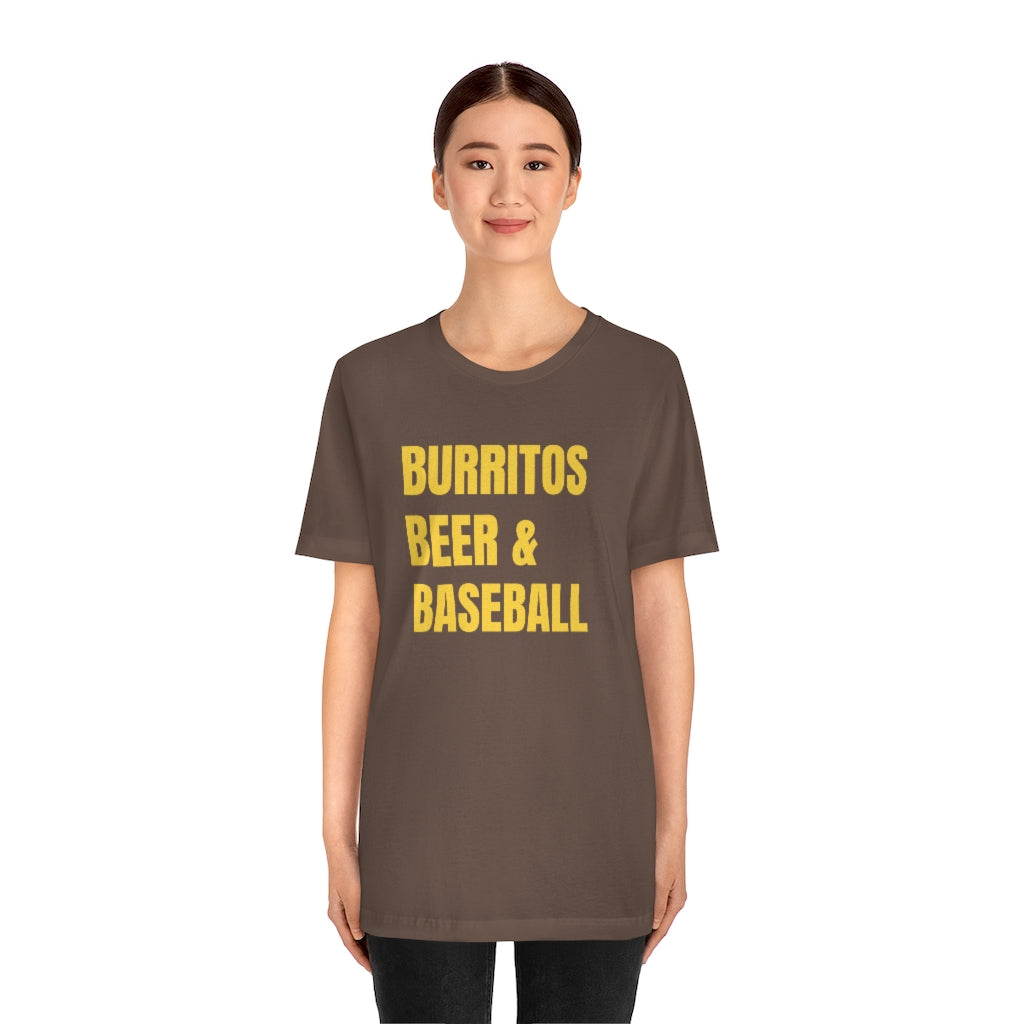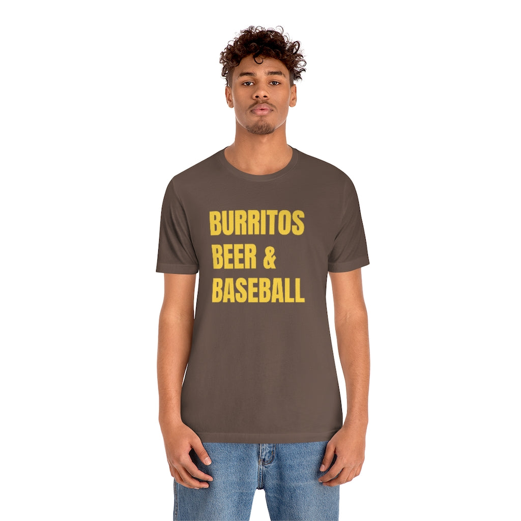 These are are a few of my favorite things. Wear this funny tee during the summer to show your personality and favorite pastimes. It makes a gift idea for someone who loves burritos, beer, and San Diego baseball!