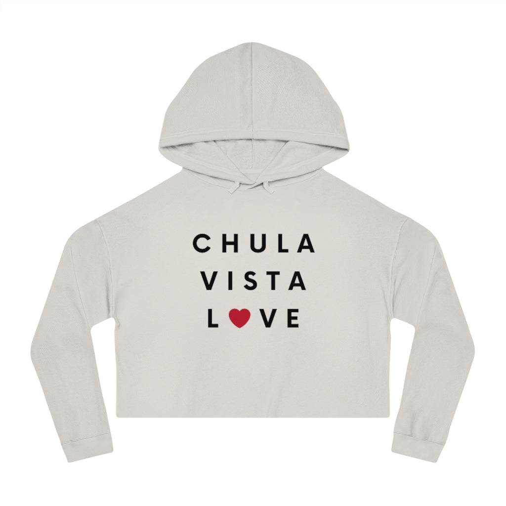 Chula Vista, the 2nd largest city in San Diego County, means "beautiful view". There is more to see and do in Chula VIsta than you can imagine! Miles of trails, coastline, and open space for outdoors enthusiasts. Shopping, dining, entertainment, and a historic downtown district. There's so much to love about Chula Vista. So whether it's your hometown or chosen town, wear your Chula Vista Love cropped hoodie with pride.