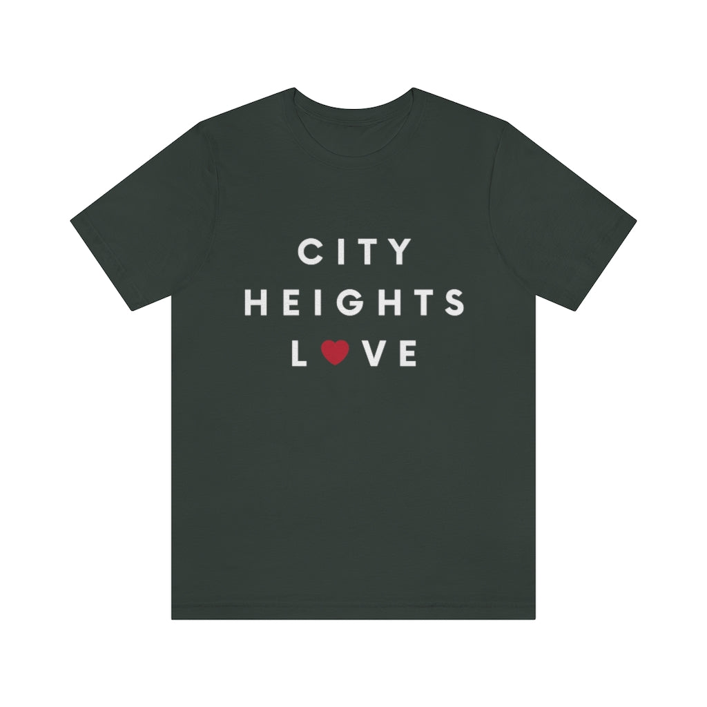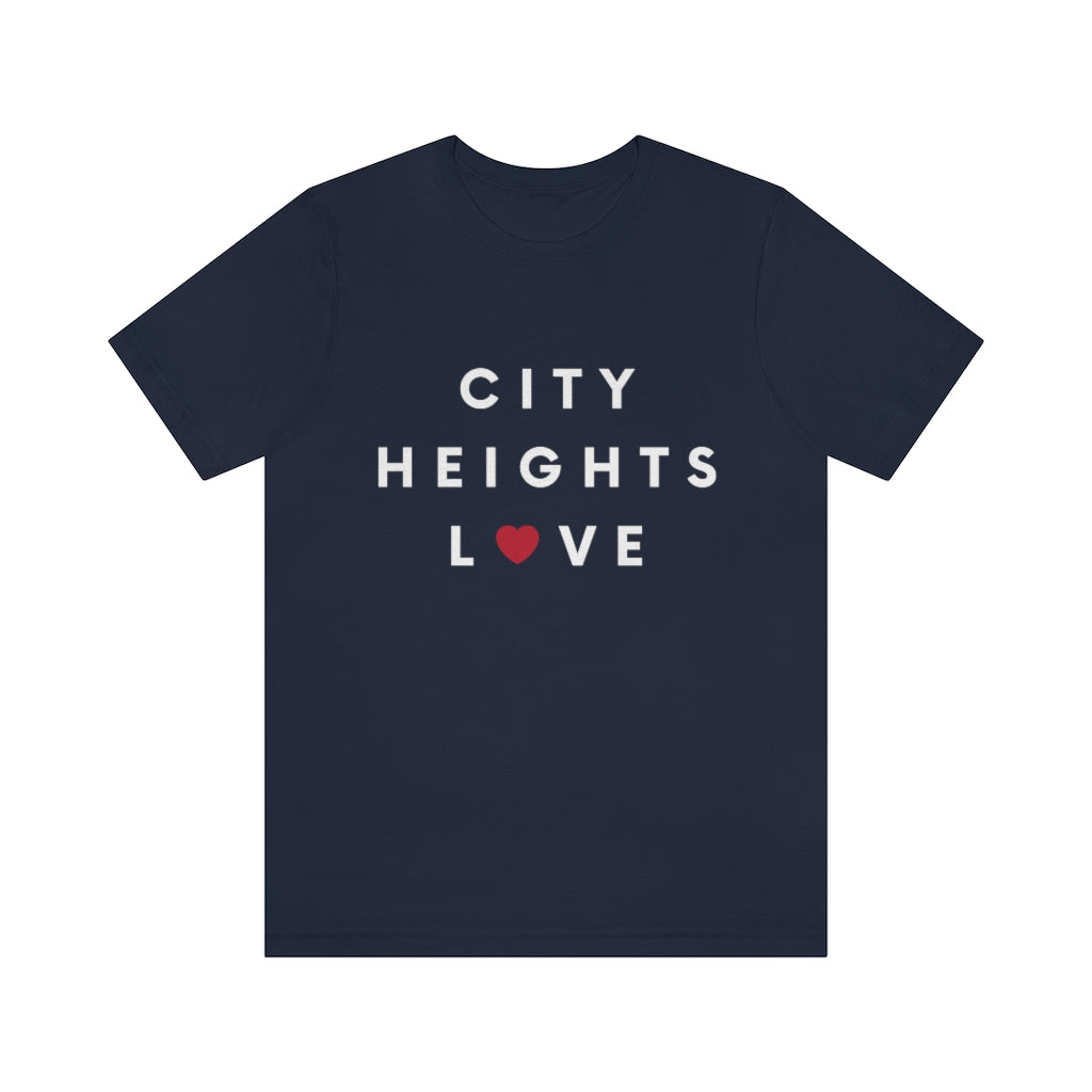 City Heights represents the very best of San Diego with its diverse communities, authentic restaurants, bars and shops, and a commitment to bridging divides through art and engagement. There's so much to love about City Heights. So whether San Diego is your hometown or chosen town, wear your City Heights Love t-shirt with pride.