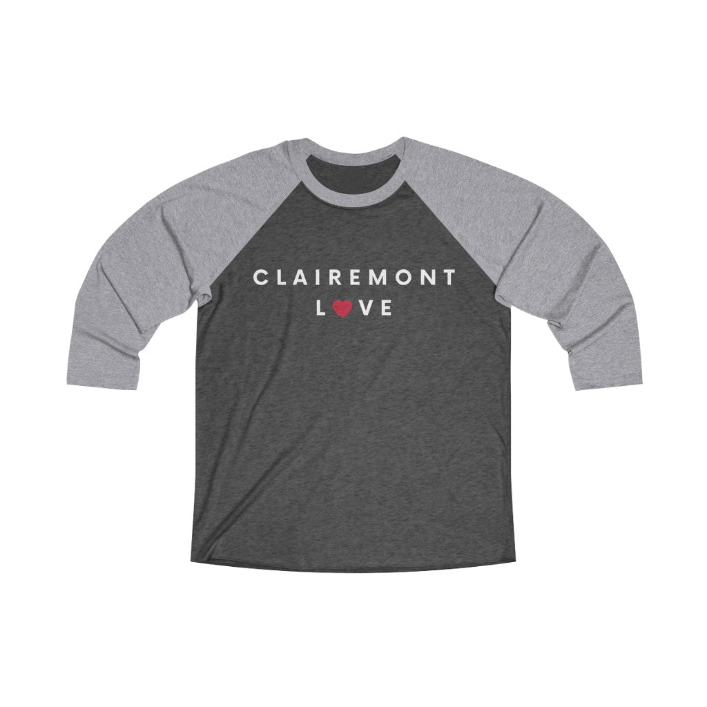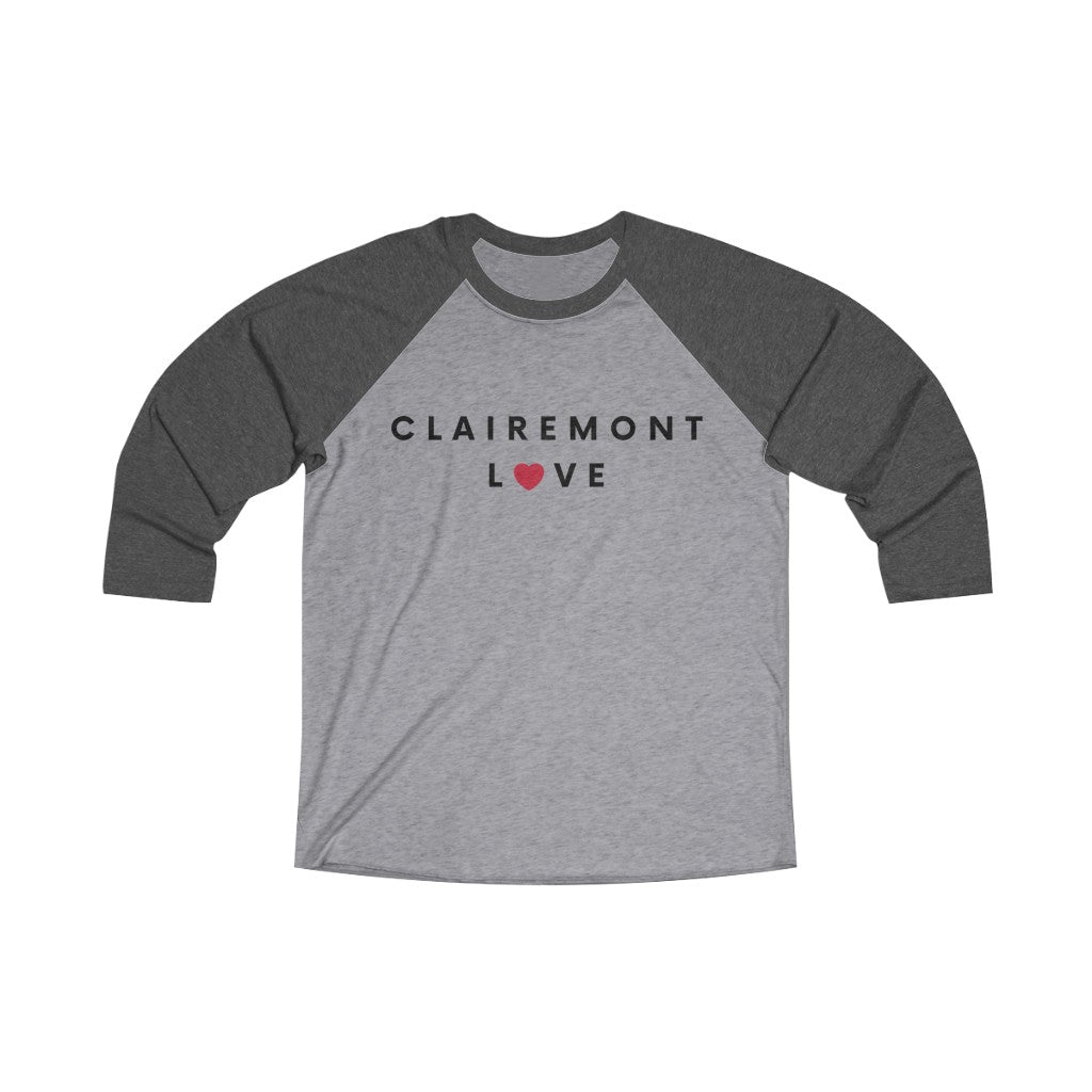 Clairemont Love Long Sleeve Baseball Tee, San Diego Neighborhood 3/4 Sleeve T-Shirt (Unisex) (Multiple Colors Avail)