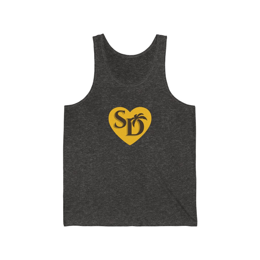 With the sand, brown & gold color scheme, you'll notice our"I Heart SD" tanks are inspired by our home team, the San Diego Padres. This SD Love tank-top is a cool way for you to represent America's Finest City! It makes an excellent gift for someone missing home or a cool souvenir from your SD visit. So whether it's your hometown or chosen town, wear the SD on your chest with pride.