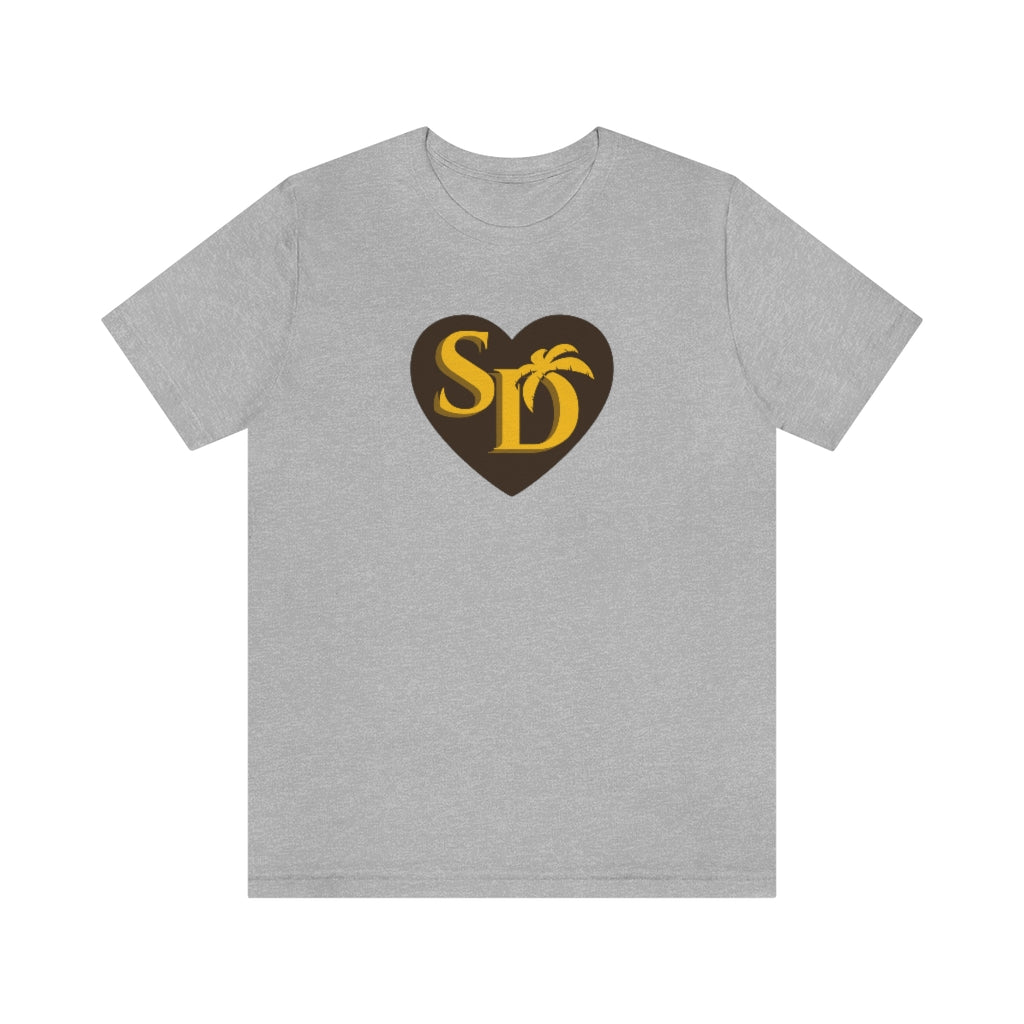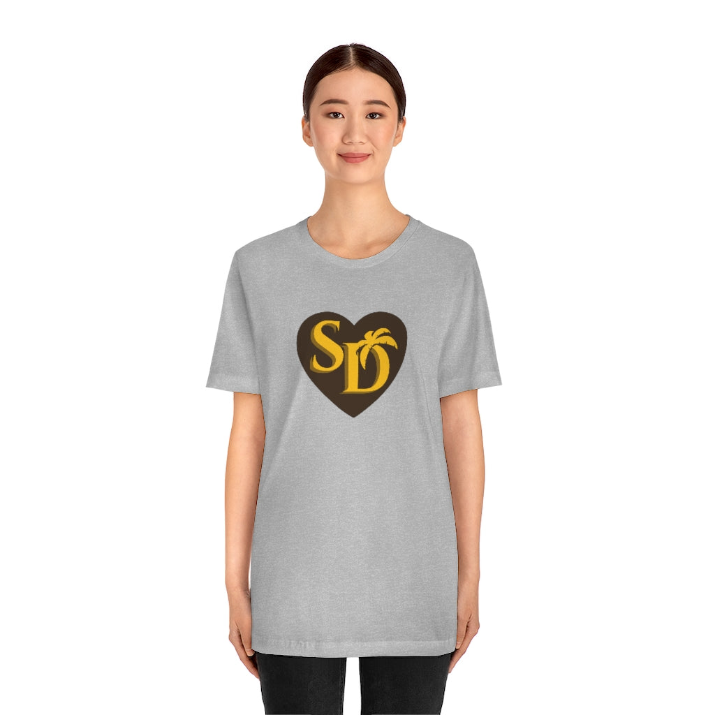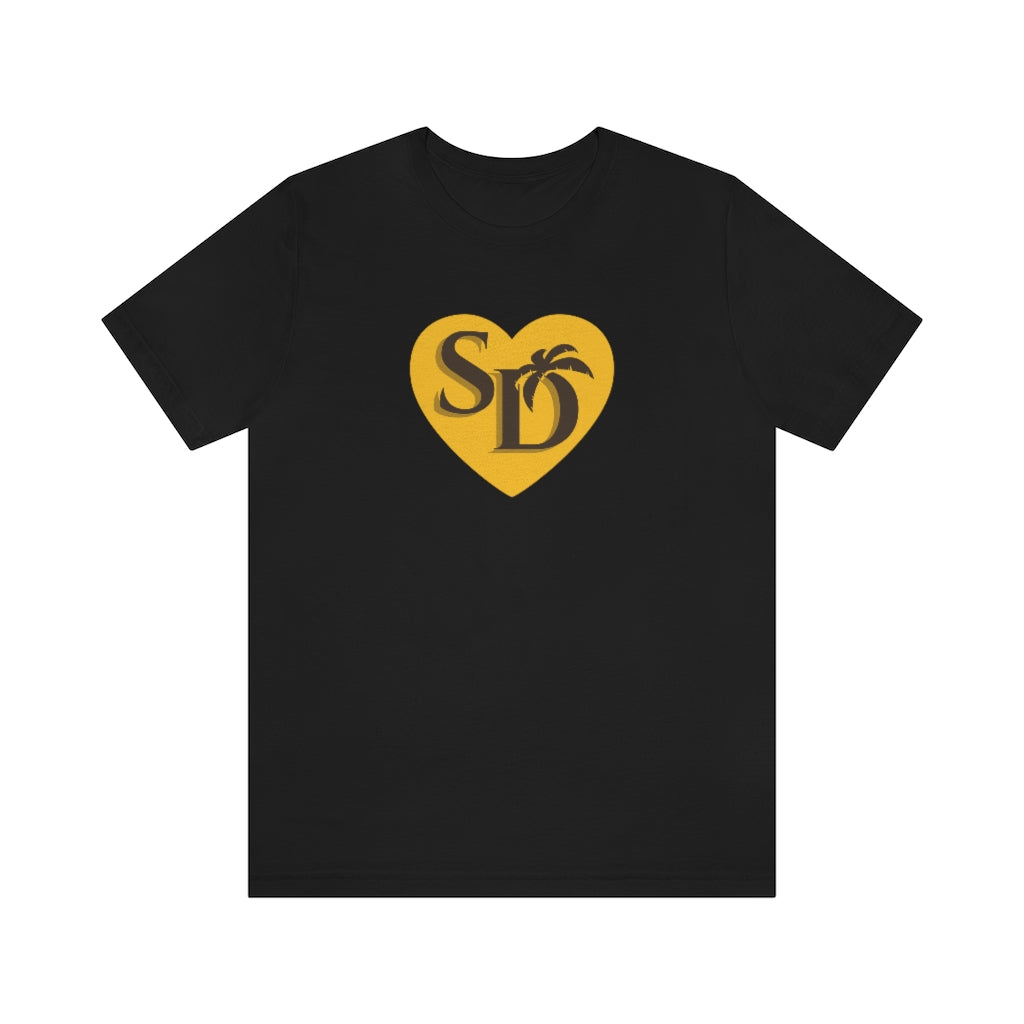 Our SD Love t-shirt pays a subtle the San Diego Padres with the brown & gold color scheme. A cool t-shirt to show your love for the home team. So whether it's your hometown or chosen town, proudly wear the SD on your chest!