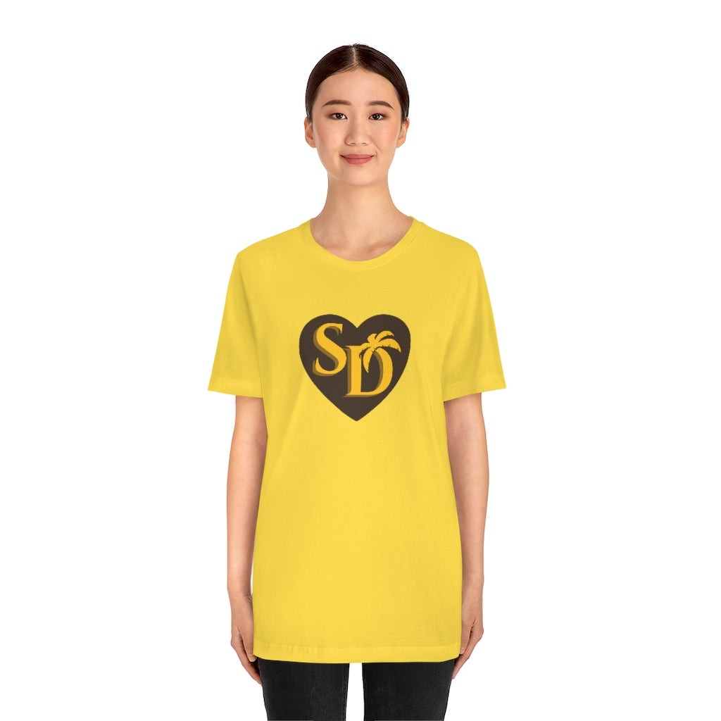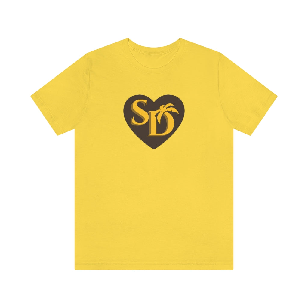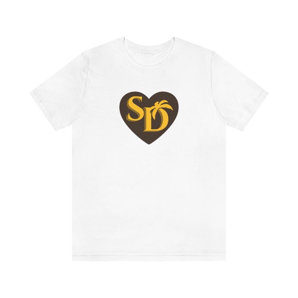 Our SD Love t-shirt pays a subtle the San Diego Padres with the brown & gold color scheme. A cool t-shirt to show your love for the home team. So whether it's your hometown or chosen town, proudly wear the SD on your chest!