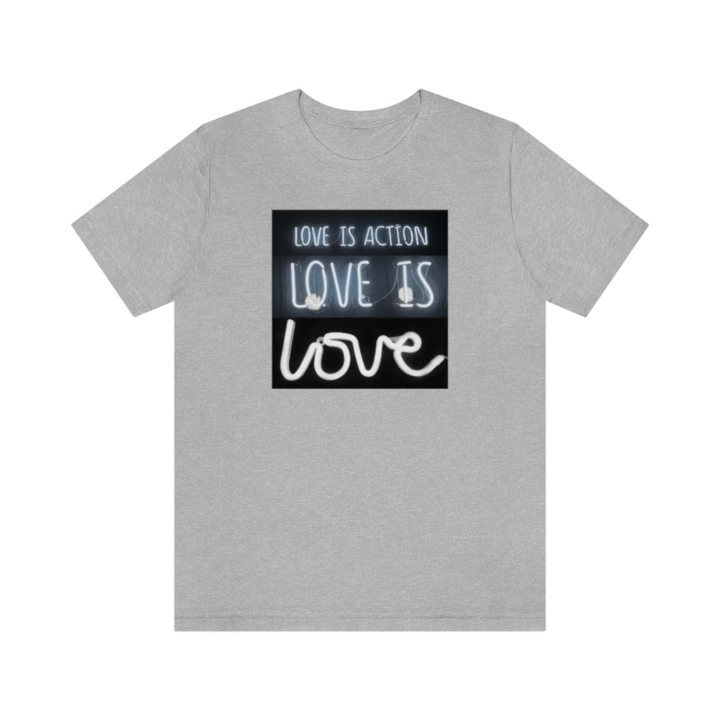 This classic neon Love unisex jersey short sleeve tee fits like a well-loved favorite. Soft cotton and quality print make users fall in love with it over and over again. These t-shirts have-ribbed knit collars to bolster shaping. The shoulders have taping for better fit over time. Dual side seams hold the garment's shape for longer.