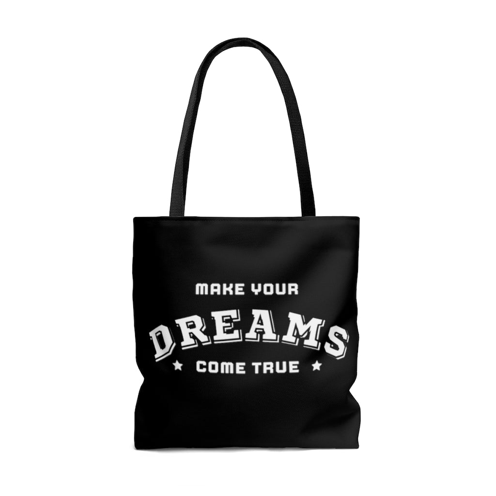 An inspirational tote bag to remind you to take action towards making your dreams come true.