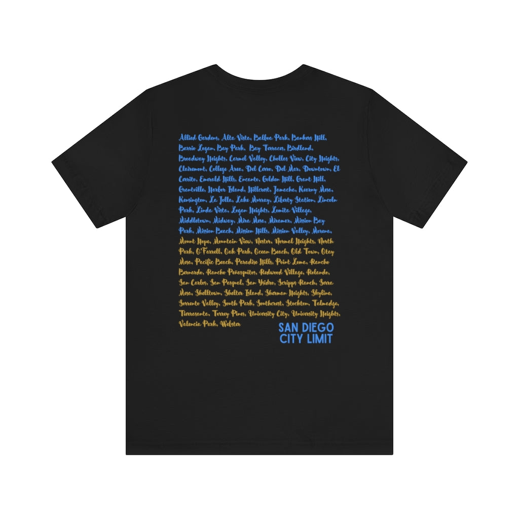 San Diego Neighborhoods Tee | SD Areas on back (Baby Blue)