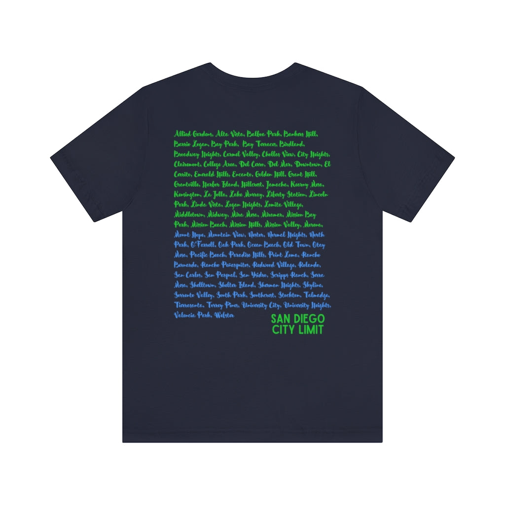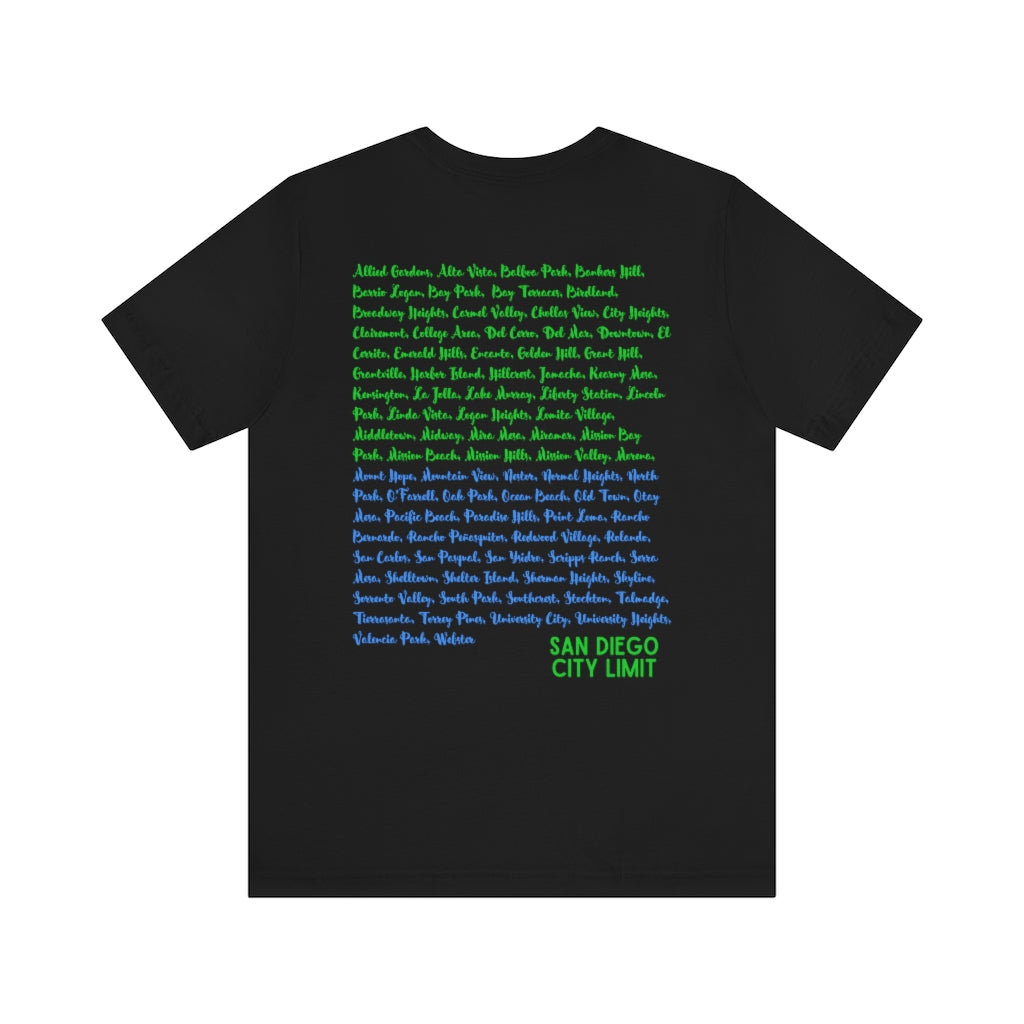 San Diego Neighborhoods Tee | SD Areas on Back (Lime Green)