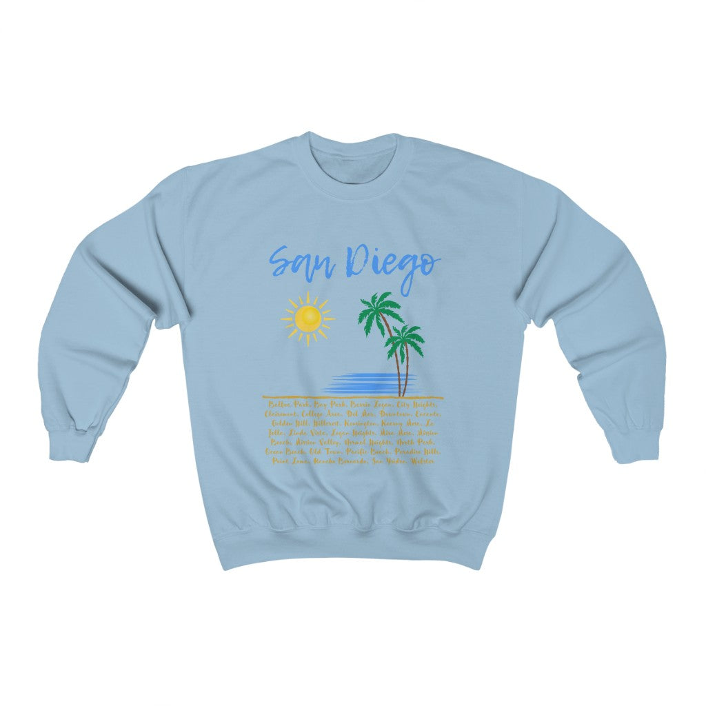 San Diego Neighborhoods Sweatshirt | SD Areas on back (Baby Blue)