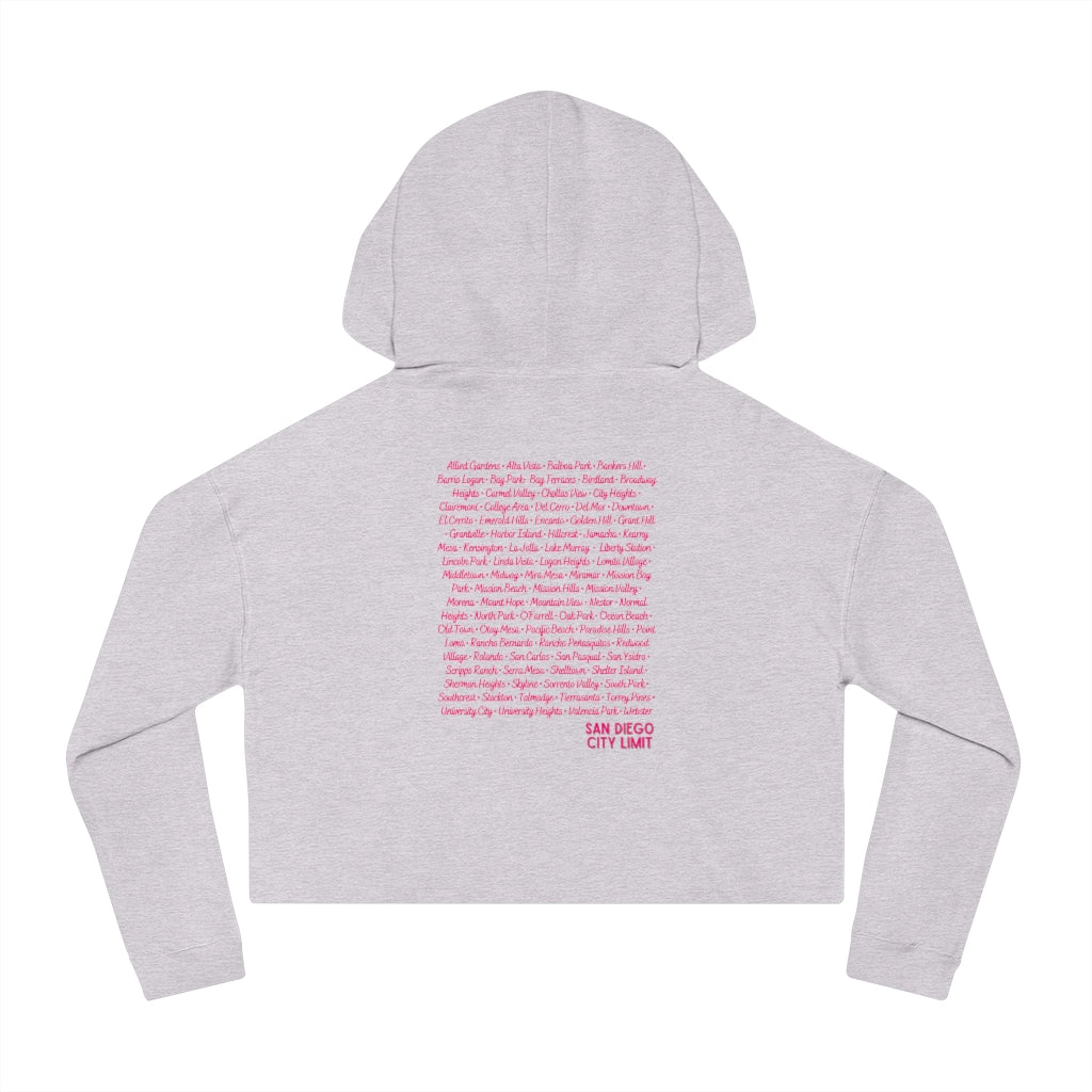 San Diego City Limit Cropped Hooded | SD Areas on back (Pink)