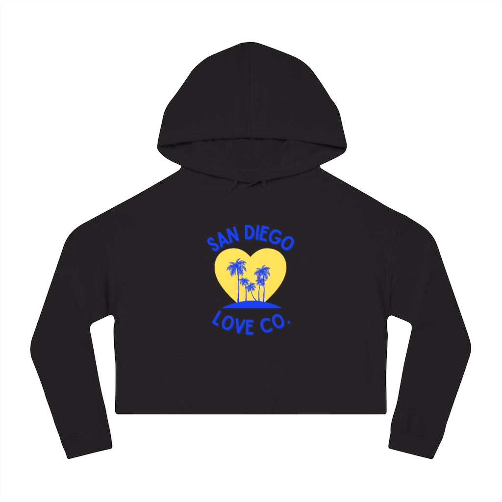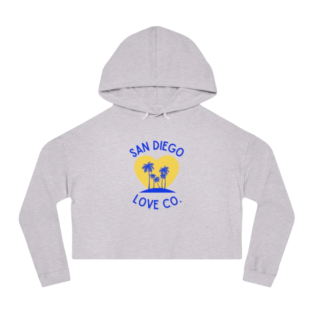 The San Diego Love Co. women's cropped hoodie gives a classic SoCal vibe with the royal blue palm trees and bright yellow-gold sun. Our original SD sweatshirt is perfect for San Diegans to proudly rep America's Finest City!