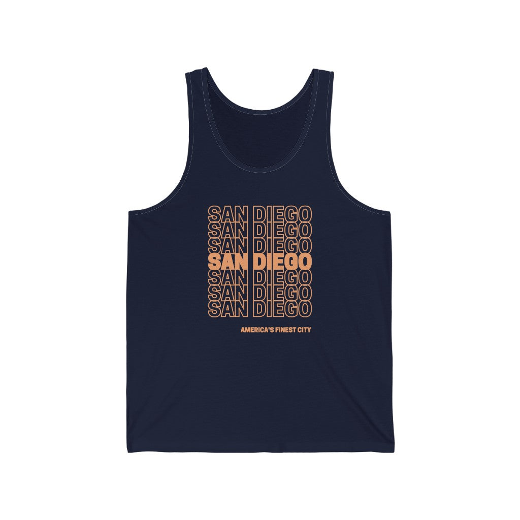 Represent America's Finest City with this original San Diego tee in the fun "Thank You bag" style font. Makes an excellent gift or a great souvenir from your SD visit.