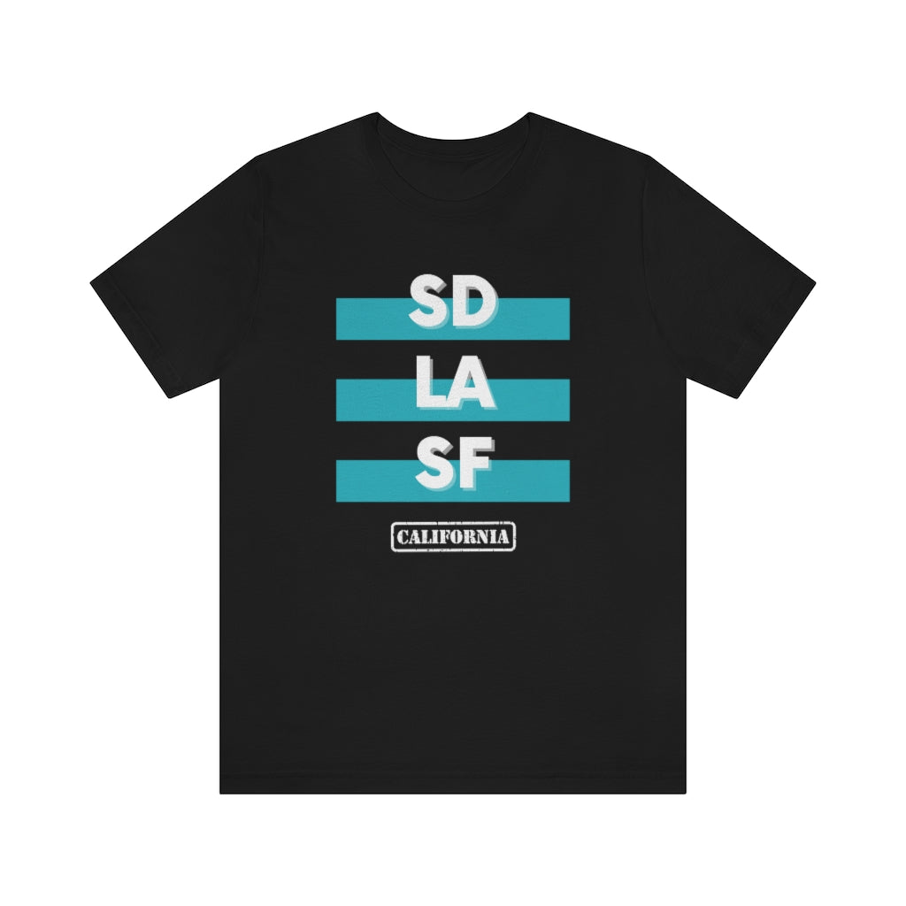 A cool t-shirt for Californians to represent San Diego, Los Angeles, and San Francisco. Cali stand up!