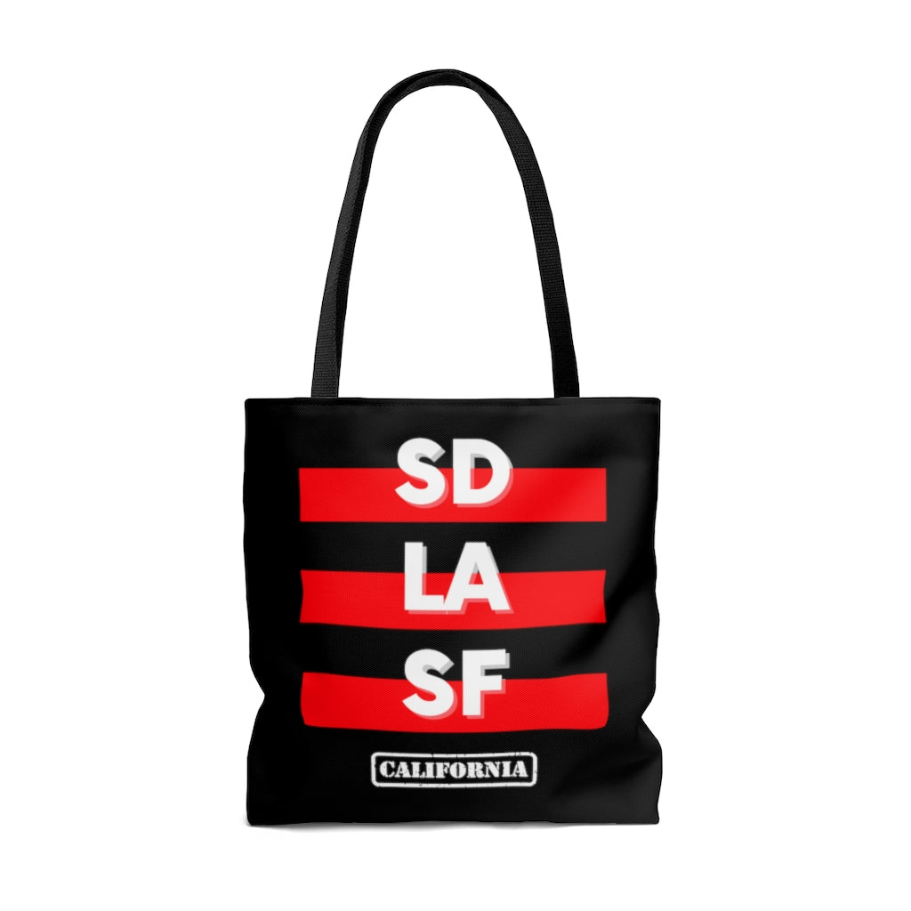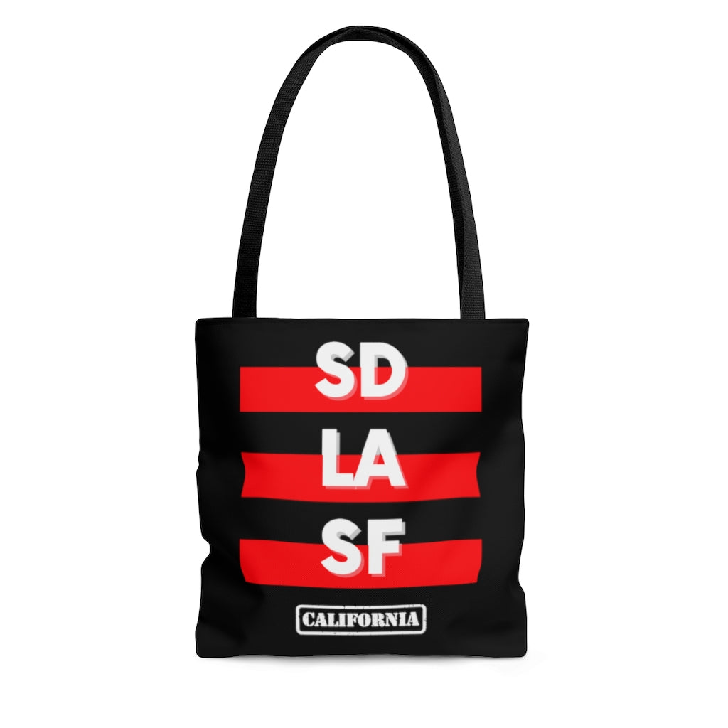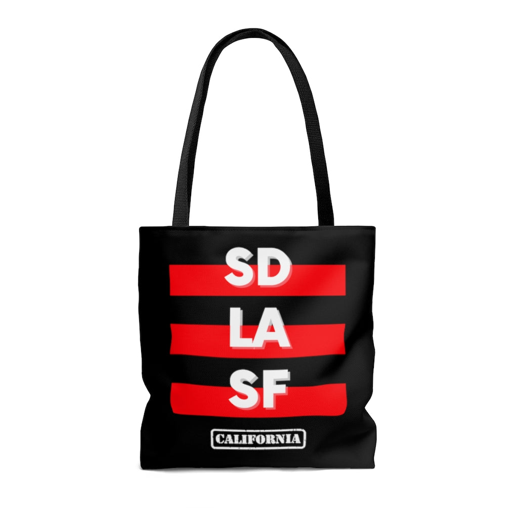 SD LA SF California Red and Black Tote Bag