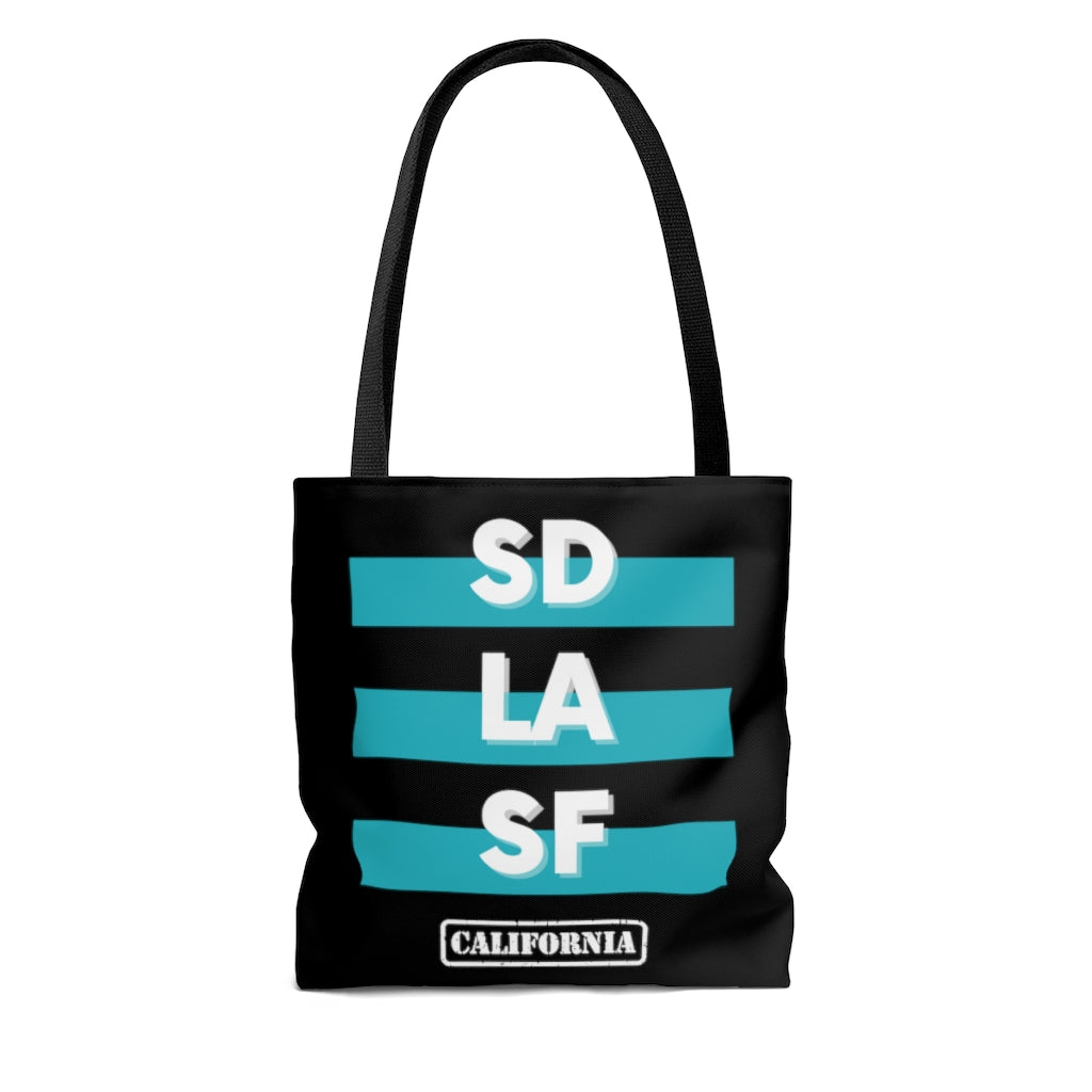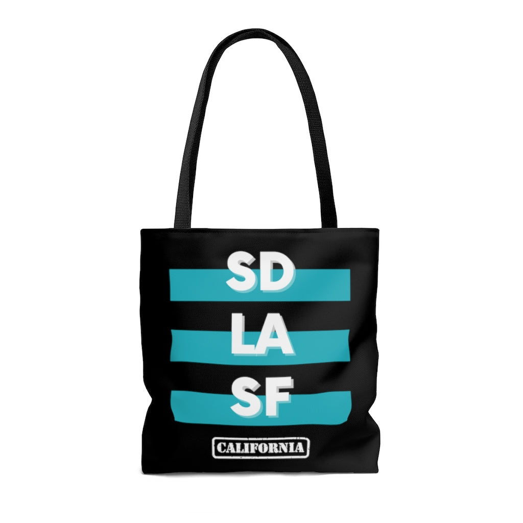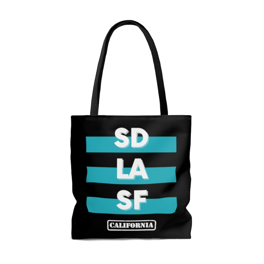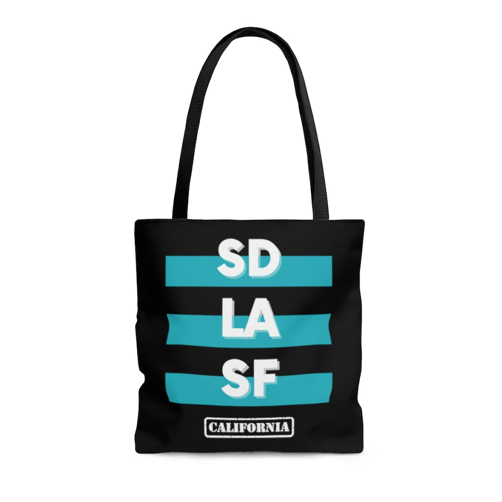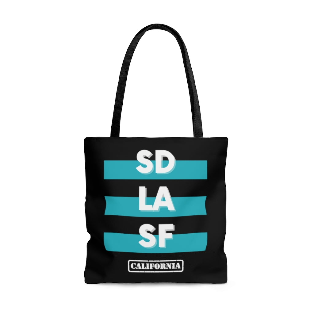A cool Californian tote bag representing San Diego, Los Angeles, and San Francisco. Cali stand up! A cool tote that can be used as a beach bag, shopping bag, overnight bag, or gym bag, Makes an excellent gift for Californians!
