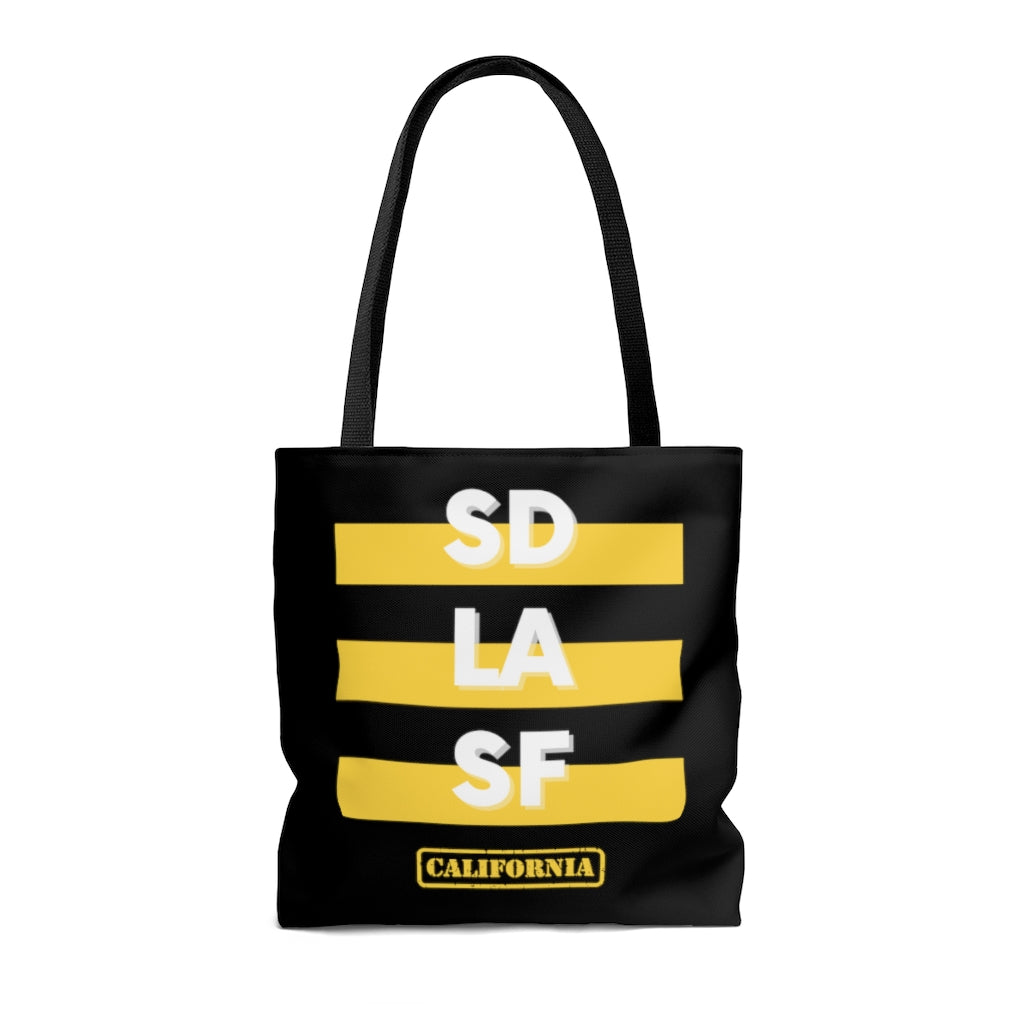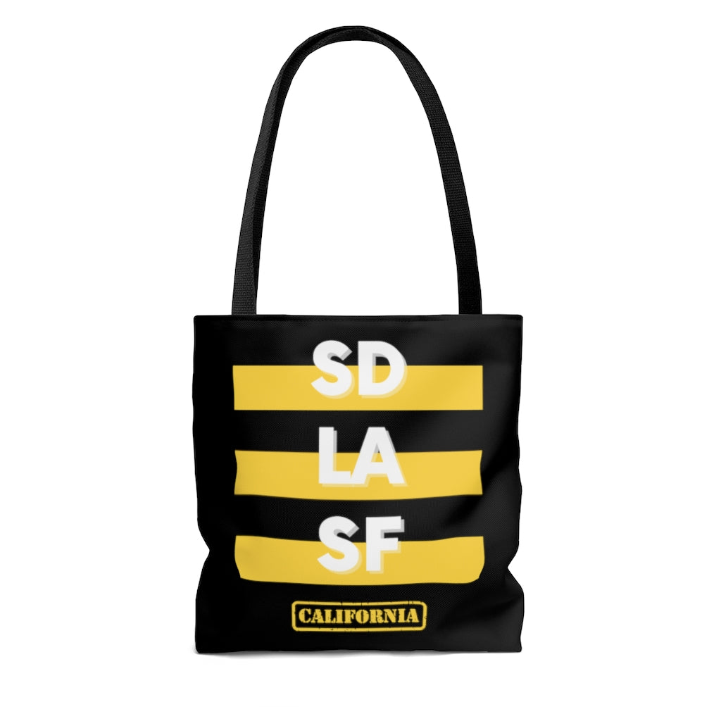 SD LA SF California Yellow and Black Tote Bag