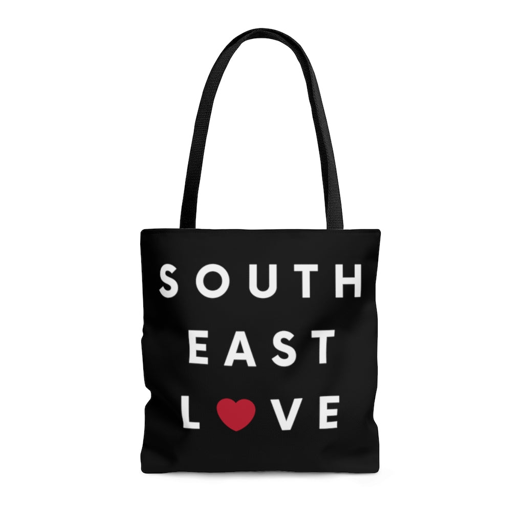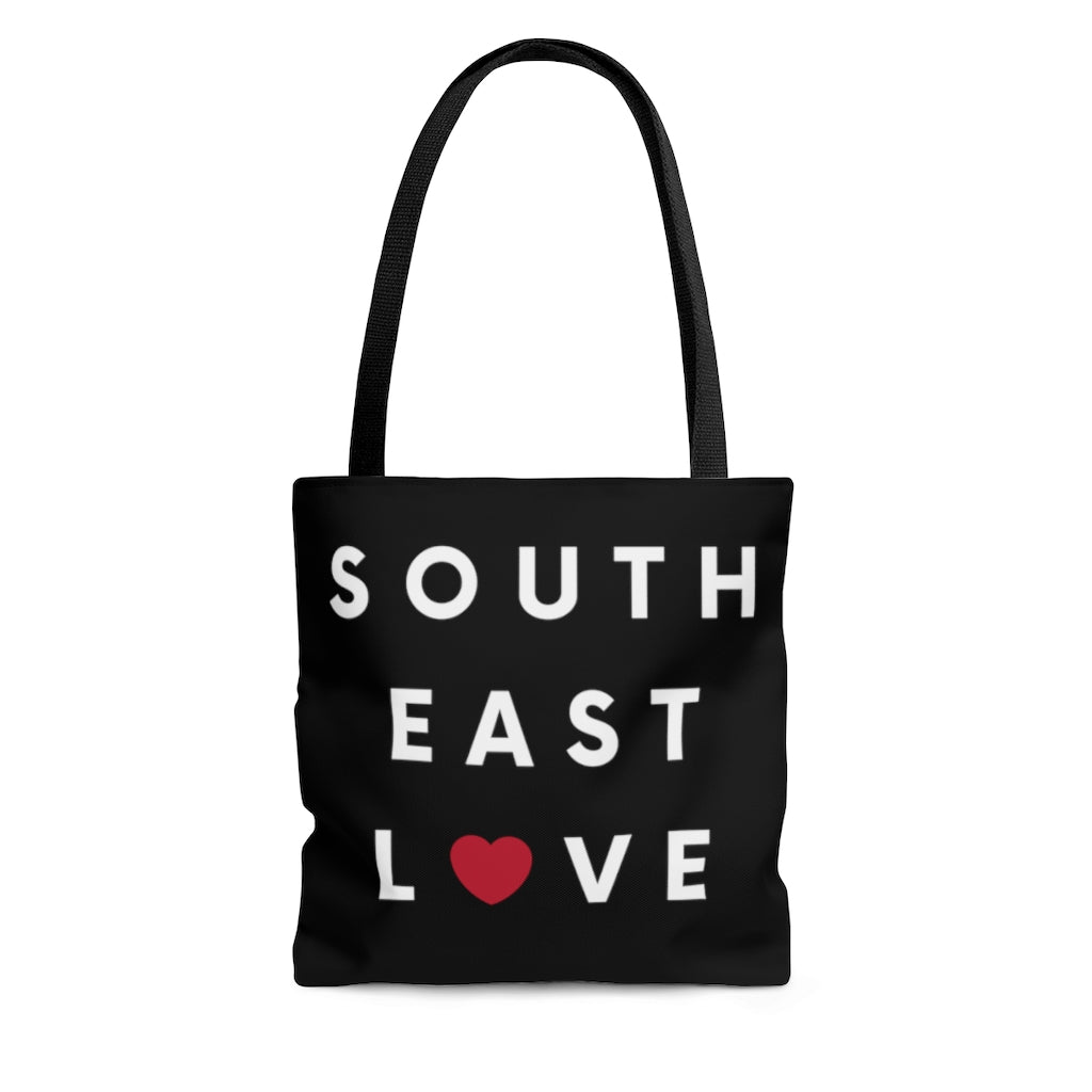 Southeast Love Black Tote Bag, San Diego Neighborhood Beach Bag